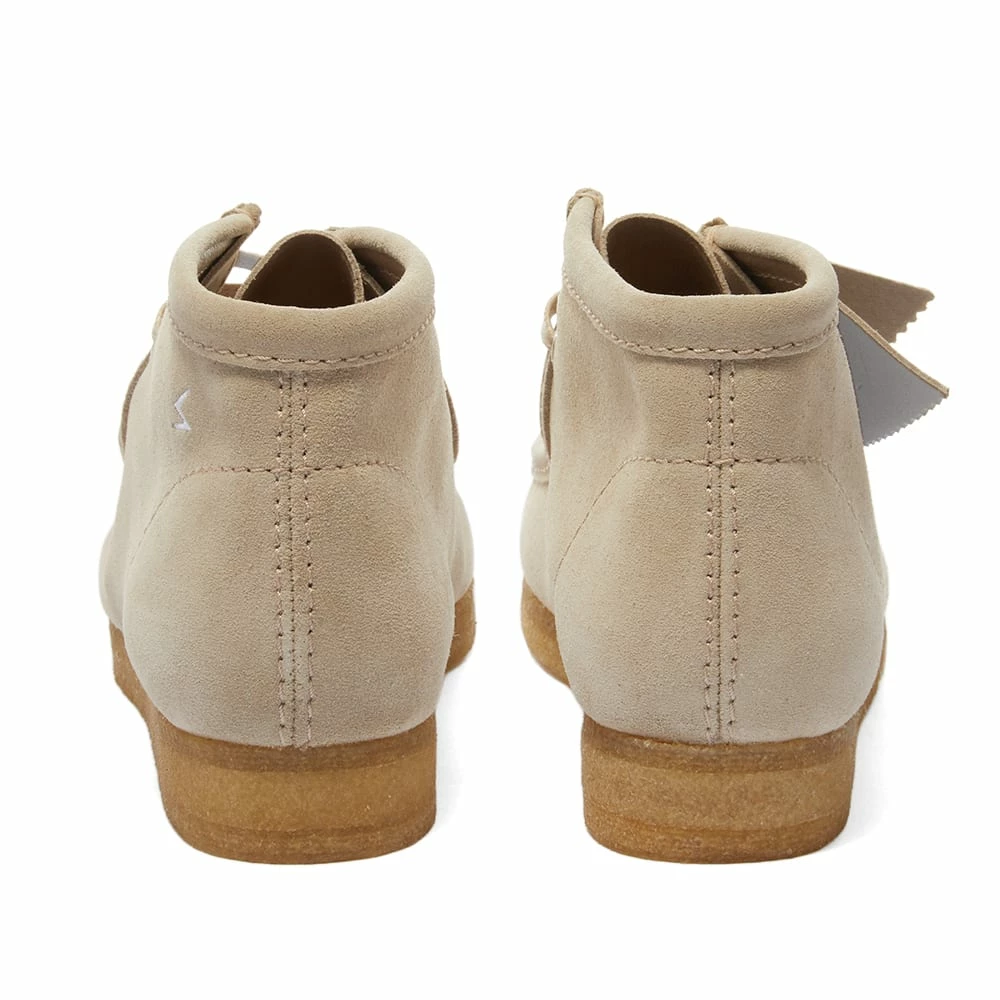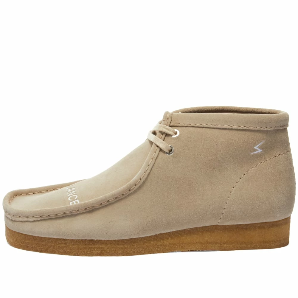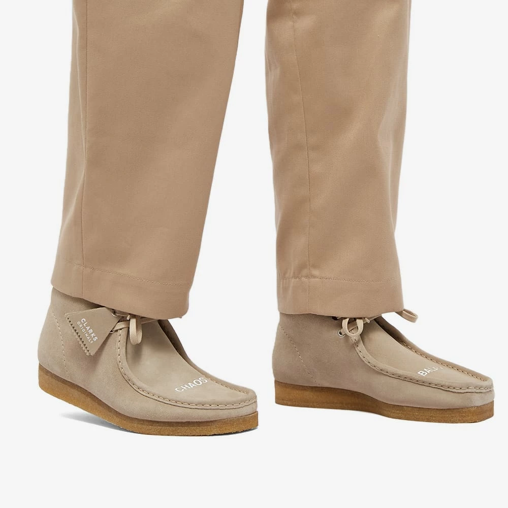 Clarks Originals iconic Wallabee boot is given a punk fused, American influence twist from Japanese streetwear brand Undercover. With a beige suede upper and rubber crepe sole, there is a unique embroidered design with the words ‘Chaos’ and on one foot and ‘Balance’ on the other. Featuring a embroidered thunder bolt on the left heel and dual branded stamp in the footbed.