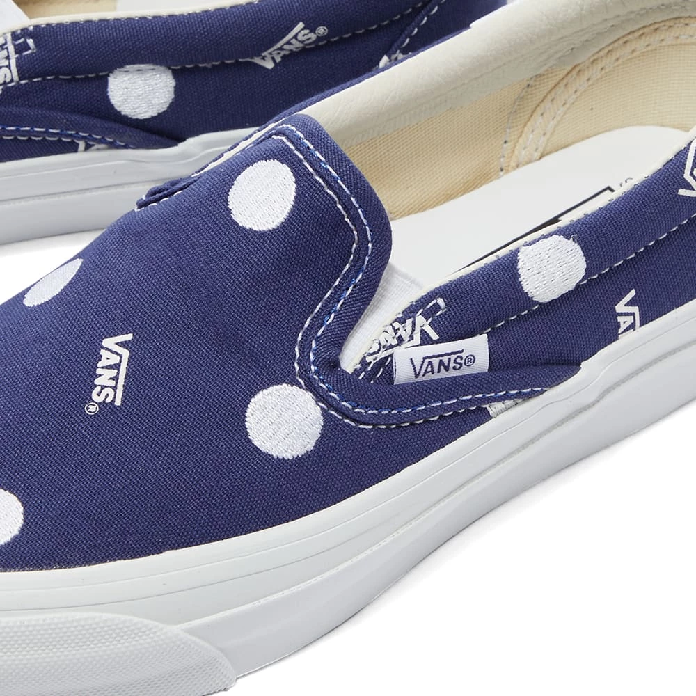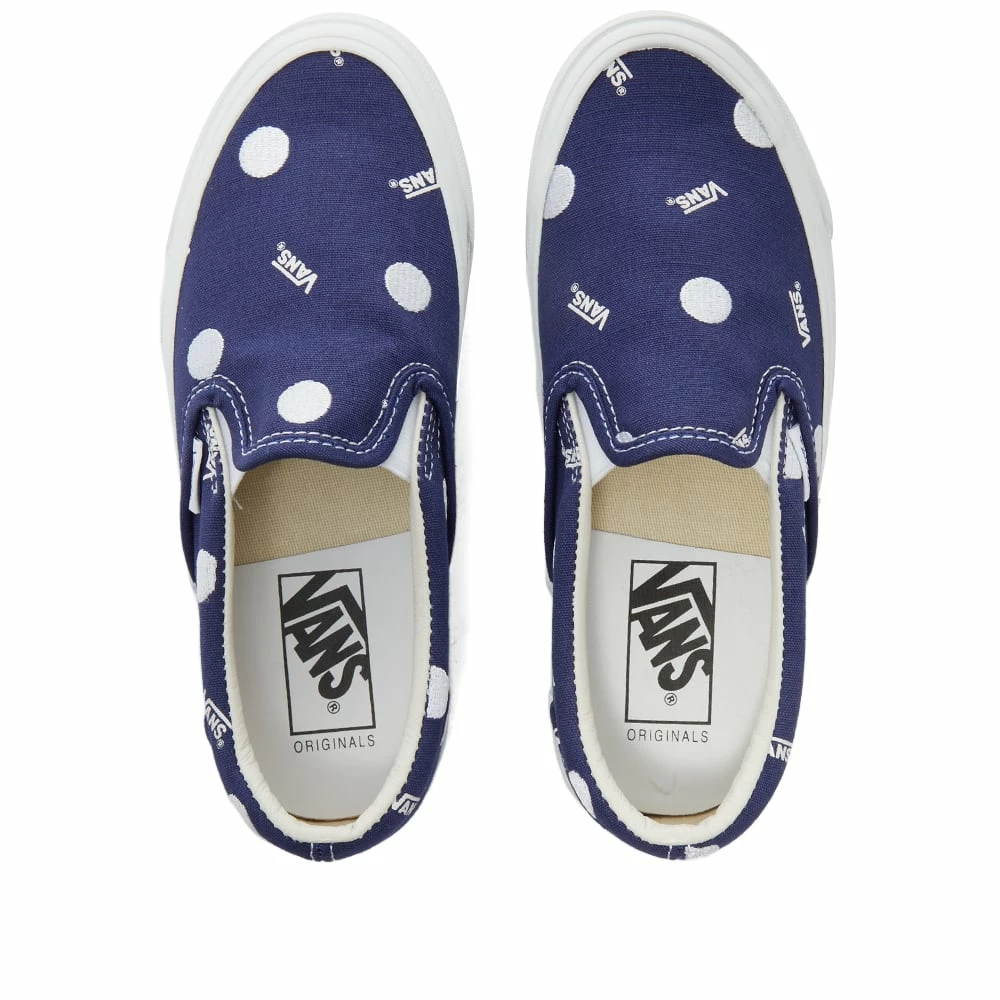 The Vans Vault OG Classic Slip-on needs no introduction. These blue ones are covered in playful polka dots and classic logos for a look that’s sure to add some fun to your ‘fits.