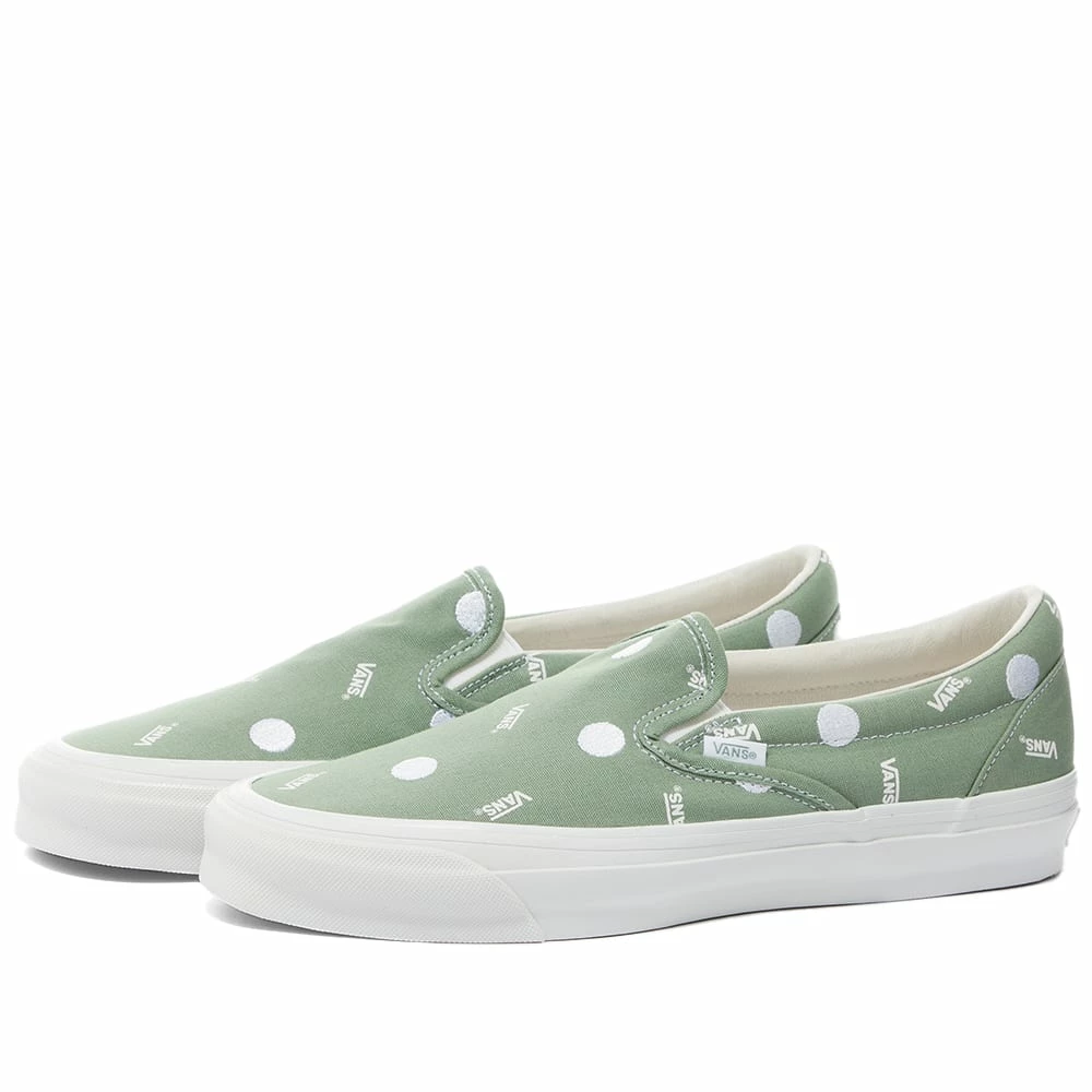 The Vans Vault OG Classic Slip-on needs no introduction. These green ones are covered in playful polka dots and classic logos for a look that’s sure to add some fun to your ‘fits.