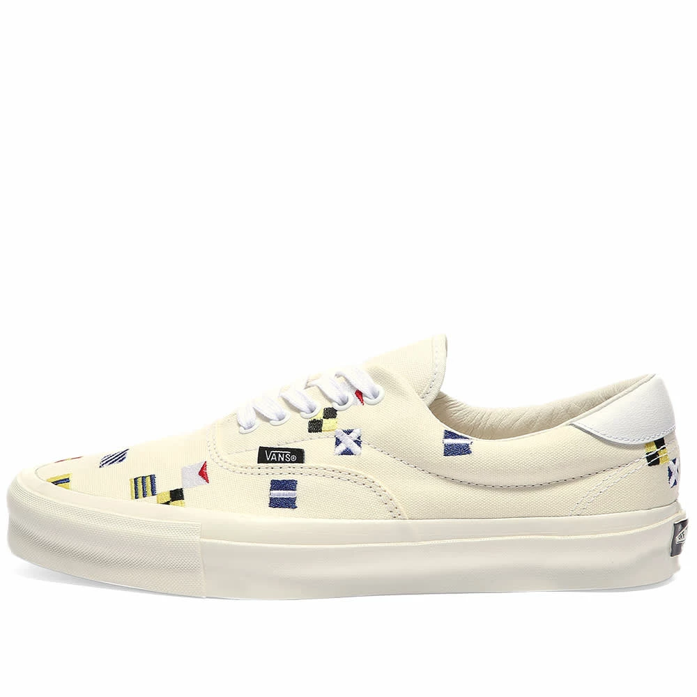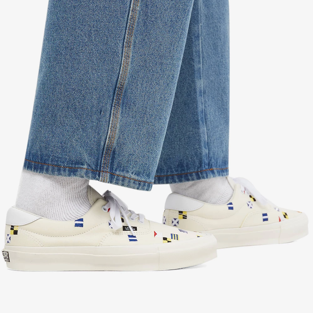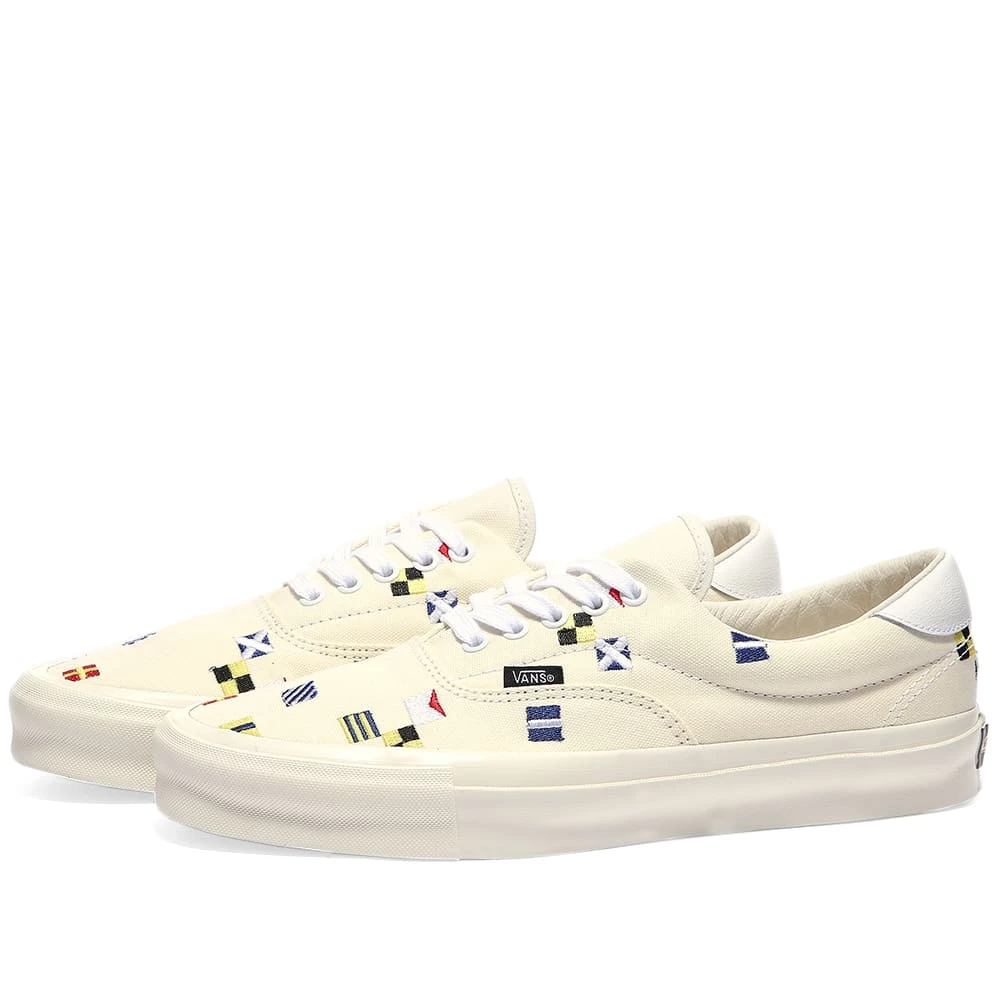 Covered in signal flags – these off-white UA OG’s from Vans Vault are oozing with funky skater style. With comfy textile uppers and a supportive bouncy rubber outsole featuring below, these are made to be sported from the skate park to the city streets in spring/summer time. Complete with signature branding at the heel and beside the lace stay, you can’t go wrong with this bold pair.