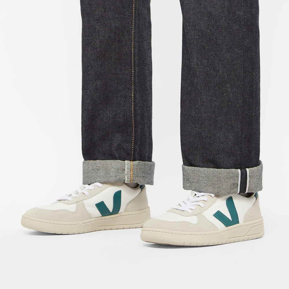 VEJA’s V-10 sneaker puts a sustainable spin on a classic basketball style. Representing 10 years of love, it features an upper combining B-Mesh with water-repellent suede and leather, while the sole is made of wild rubber from the Amazonian forest.