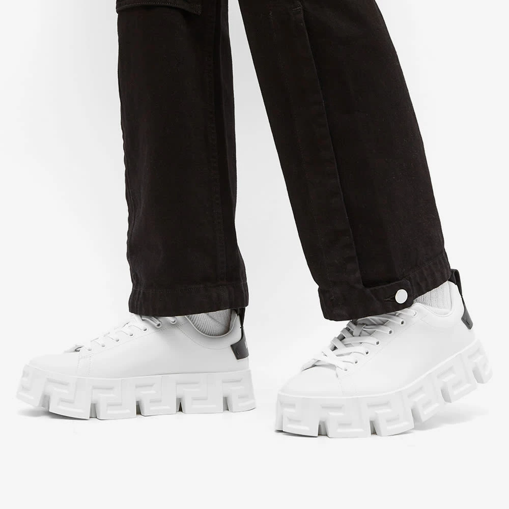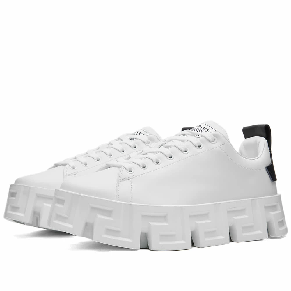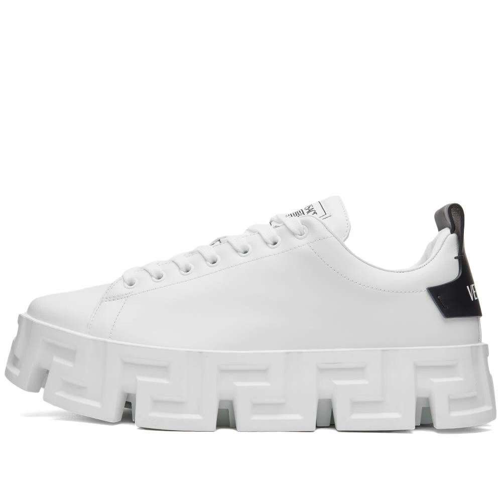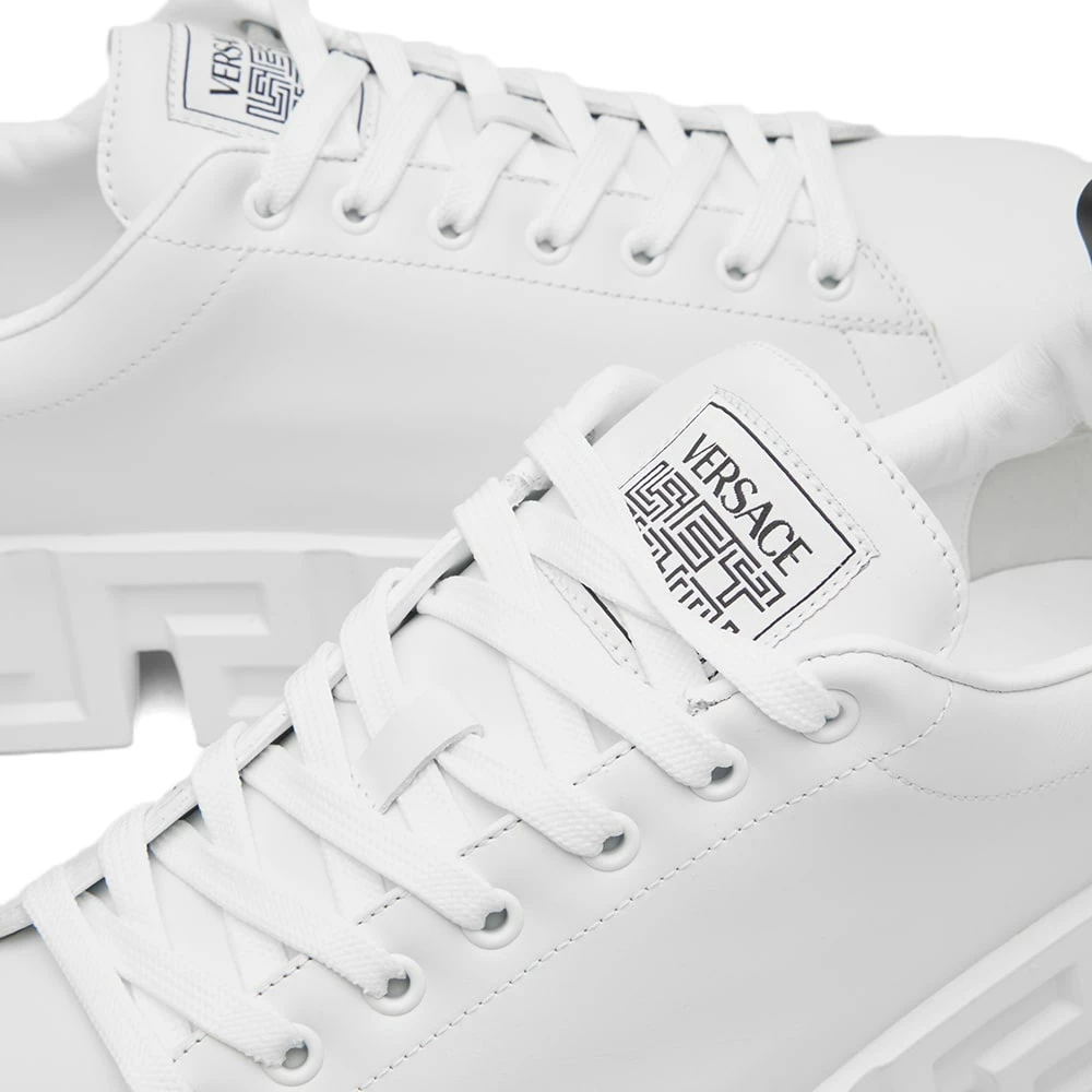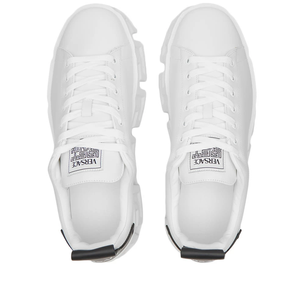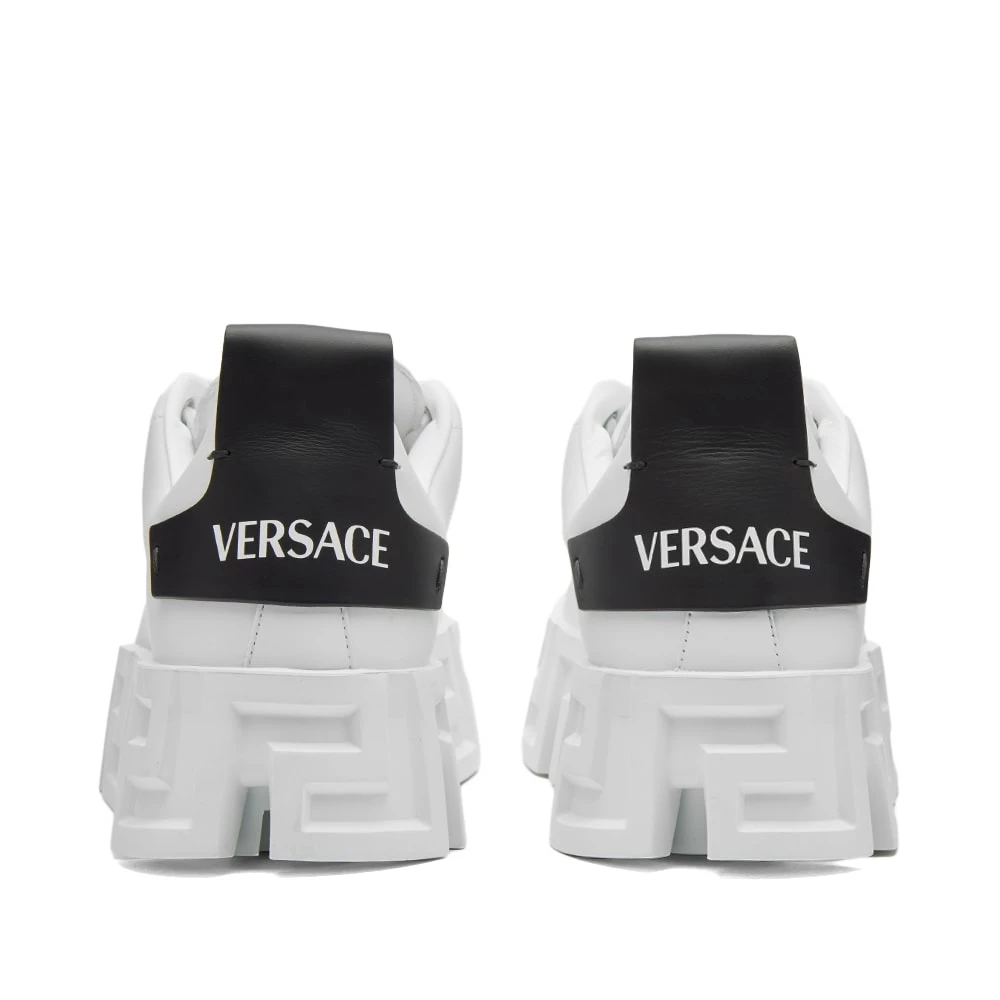 Versace’s ever iconic Greca design – inspired by the architecture where Gianni Versace would play as a child – takes centre stage on these sneakers, elevating the smooth leather uppers to new heights. The heritage logo meanwhile, details the heel – ensuring an unmistakable look from every angle.