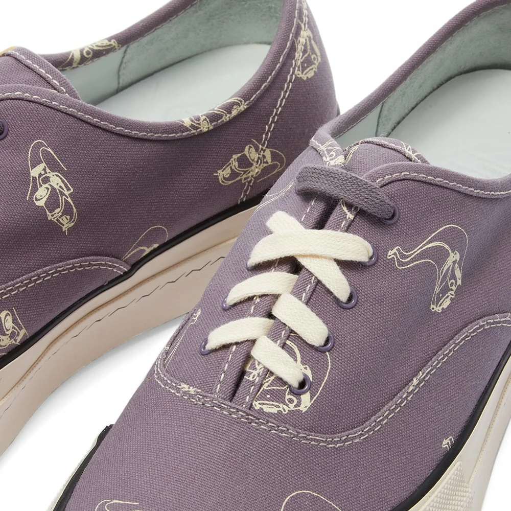 obsession with Americana continues in the purple Logan Deck Roadster sneaker, with Hiroki Nakamura’s vintage clothing and footwear collections inspiring pieces that honour age-old quality. Taking design nods to an old-school skater silhouette, they look vintage but are made for modern day. Crafted from a Japanese canvas, a distressed midsole reiterates the ‘worn in’ look.