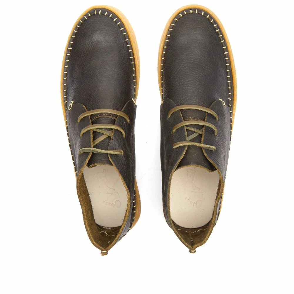 A brand that hand-stitched footwear at a third generation family owned factory, Yogi presents the contemporary collection. Inspired by the Chukka boot from the 1940s, the hitch leather boot is a hand-stitched chukka boot made with premium leather and a contemporary cup-sole in natural crepe.