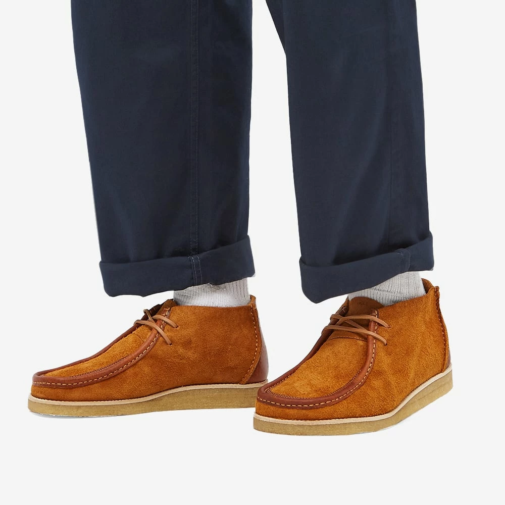 A brand that hand-stitched footwear at a third generation family owned factory, Yogi presents the contemporary collection. Inspired by the Chukka boot from the 1940s, the hitch leather boot is a hand-stitched chukka boot made with premium leather and a contemporary cup-sole in natural crepe.
